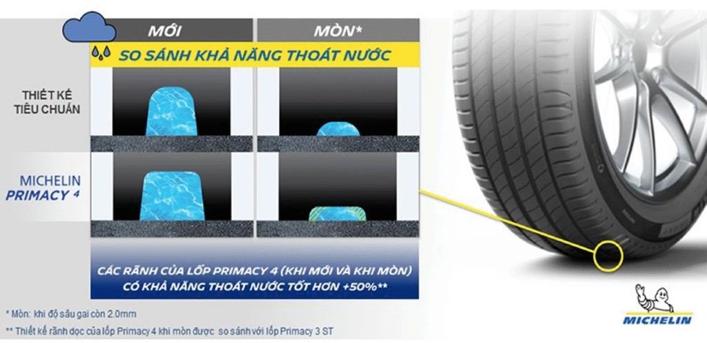 Thiết kế gai lốp tối ưu hóa khả năng thoát nước